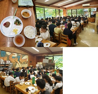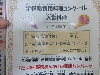 今日は、市役所の学校給食課から、楽食プロモーターの先生が来校し、給食準備の様子等を見に来てくださり、放送で食事の大切さをお話しいただきました。内容のひとつに、今日のレトルトのブラウンシチューは、9月1日の防災の日に関連して提供されました。それは、消費しながら備蓄するというローリングストックという考えで、食品ロスを防ぎながら災害時に役立つ備蓄食料を自然な形で確保できるメリットがあることも教えていただきました。