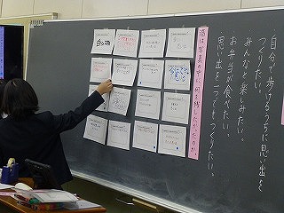 滋賀教育の日(11月1日)の取組の一つとして、本校では本日、道徳の授業参観を行いました。『2枚の写真』という資料をもとに、人間関係から見た学校のあり方について考え、最後には「自分たちの学校をどんな学校にしたいか」という思いをまとめました。学びあいでの活動では、子どもたちが互いの意見を尊重しながら語り合う姿も見られました。お忙しい中、約180名もの保護者の皆様にご参観いただき、心より感謝申し上げます。