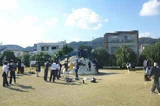○9月28日 美術部制作ののぼり旗 国体会場でお披露目