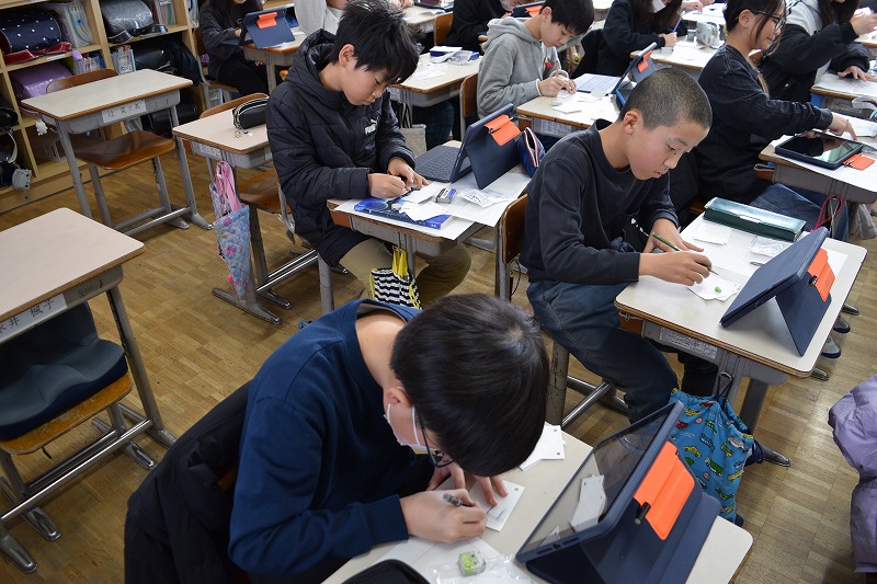 6年生は、鍵盤ハーモニカの練習。練習は始まったばかり。今後の上達が楽しみです。2年生は、冬みつけ。季節によってかわる町の様子に気づけたかな。