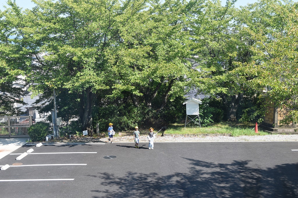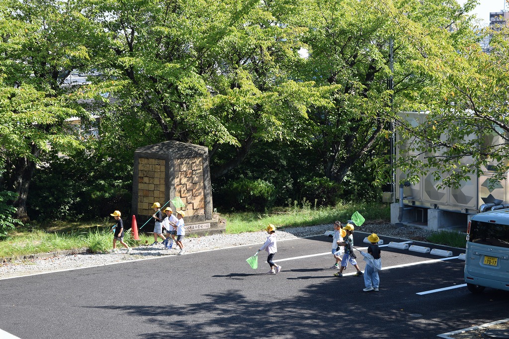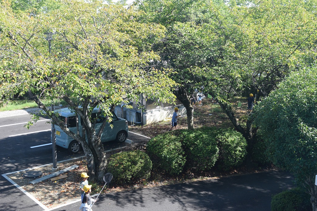 1年生の子ども達が、虫取り網を持って校庭を散策していました。