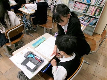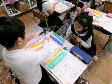 ペアになって考え方を確かめていました。