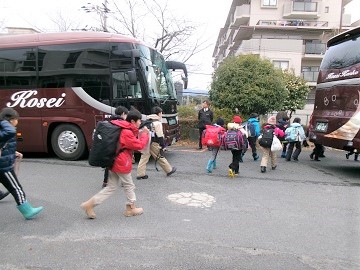 4年1・2・3組の「やまのこ」出発式です。はじめての宿泊学習ということで、気分が高揚しています。