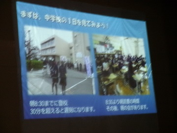 1日の学校生活の流れ、部活動、自己指導能力など、身の引き締まるお話でした。