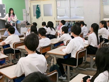 6年生は中学校進学が目の前に迫っています。今日は瀬田中学校から2名の先生が来て中学校のお話をしてくださいました。