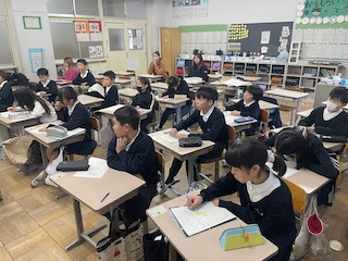 1、2学期は6年生が縦割り活動の企画運営をしてくれていましたが、今回は1年生が計画を立てて6年生と活動しました。手作りのすごろくや、ことばあつめゲームで和やかなムードで一緒に活動を楽しみました。6年生と一緒に過ごせるのもあとわずか。残りの日々も大切に、楽しく過ごしてほしいと思います。