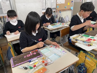 円の中や外に正多角形を書き込んだり、正多角形を組み合わせたりと、それぞれの工夫が込められた素敵な模様作りを行うことができました。