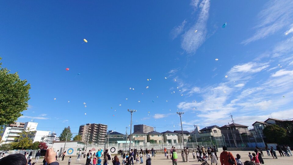 11月1日(土)・2日(日)、瀬田市民センターと瀬田小学校を会場に「瀬田学区秋まつり」が開催されました。 瀬田中学校の吹奏楽部が開会式のセレモニーでファンファーレを担当し、華やかに幕を開けた このイベント。続いて、小学校のグラウンドでは、瀬田幼稚園の園児67名による「夢風船飛ばし」が行われました。 園児たちは、一つひとつの風船に思いを込めて描いたイラストと、瀬田幼稚園の住所・メールアドレスなどを添えて、空へと放ちました。 この企画には、過去にも風船を拾った方から連絡があり、その後も交流が続いているという心温まるエピソードがあります。今回も「どこまで飛ぶかな?」「誰か拾ってくれるかな?」と期待が高まる中…