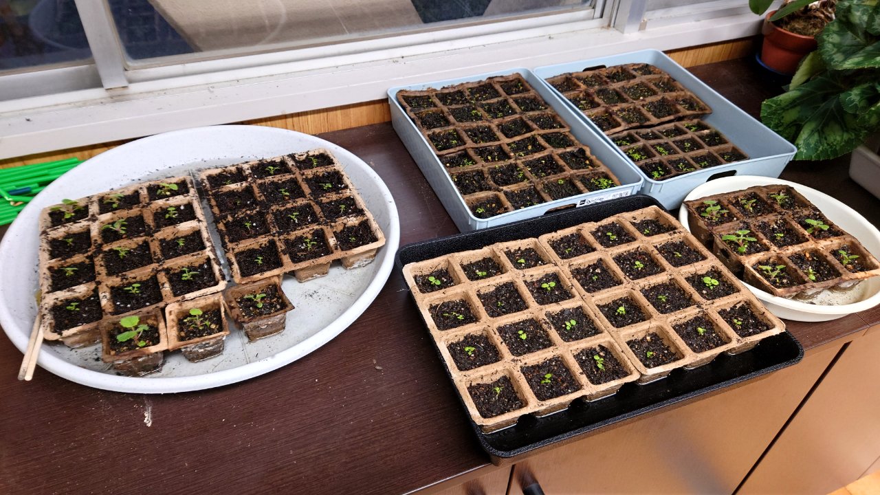 卒業式に向けて育てているサクラソウの苗、だんだん形になってきました。 耳かきひとすくいくらいの小さな種をまいてから約2週間で発芽。今は本葉がしっかりしてきたので、ひとつひとつ個別のマスに移して育てています。