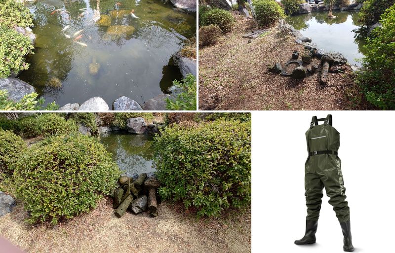 先週の三連休初日に、鯉の池にたぶん何年も、いや何十年もの間投げ込まれていた大きな石やコンクリを釣り用のヴェーダー着て池の中に入ってあげました。かなり重いものもありましたが、可愛がっている鯉のため頑張ってあげました。気持ち鯉たちも泳ぎやすそうです。