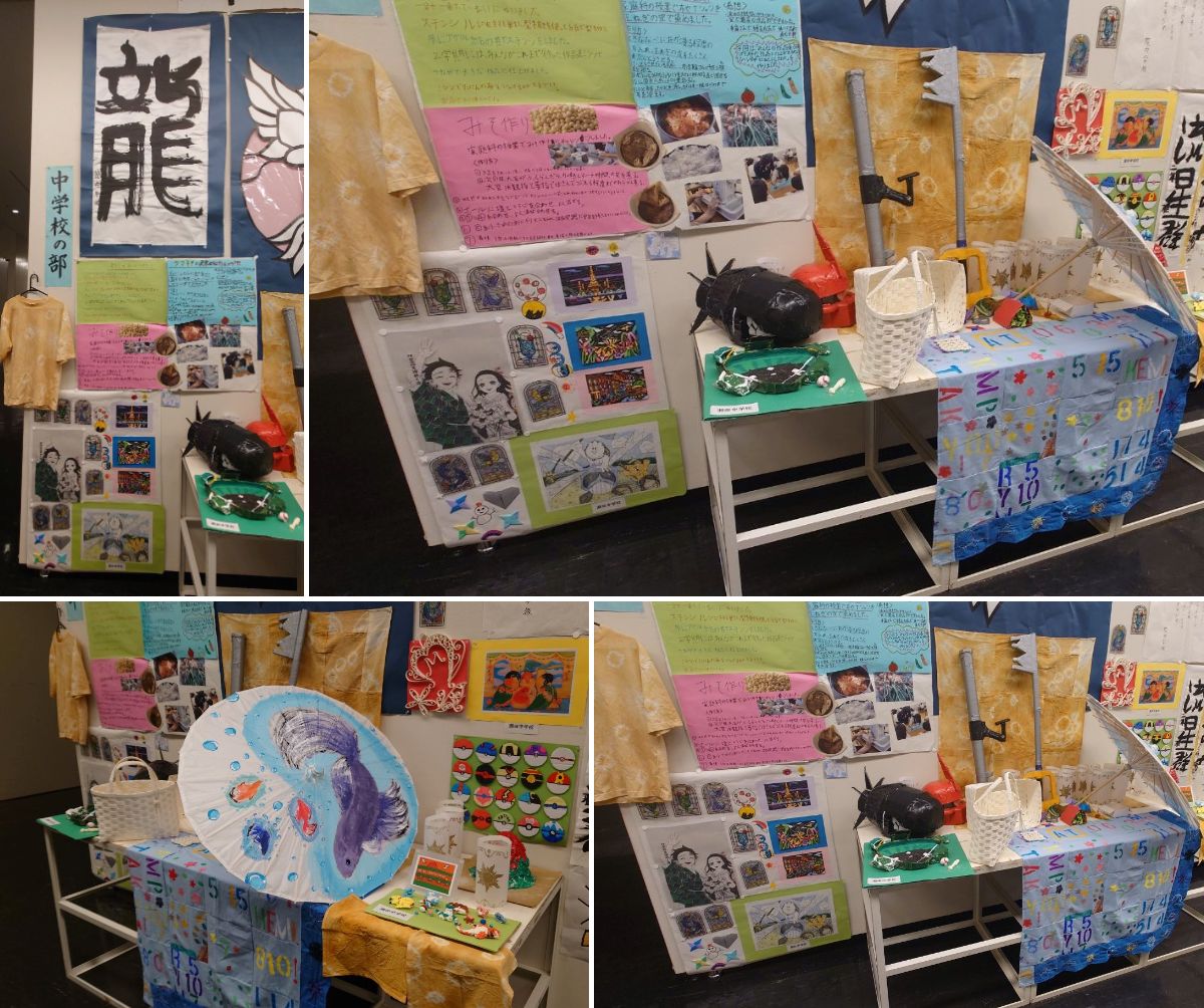 私も午後の見学に現地で合流し、生徒と一緒に作品を見て回りました。小学校・中学校それぞれの作品からは、各校園の特色や児童生徒一人ひとりの想いが伝わってきて、見ていて飽きることがありませんでした。驚きと新たなアイディアをたくさんいただける、充実した見学となりました。