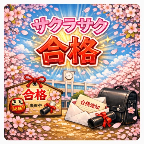 明日2月25日は滋賀県立高校入試の一般選抜、そして明後日2月26日は学校独自型選抜が行われます。瀬田中学校からは232名、3年生の約7割にあたる生徒が挑みます。これまで積み重ねてきた努力を信じ、自分の力をしっかり発揮してきてください。先生たち全員が心から応援しています。がんばって!
