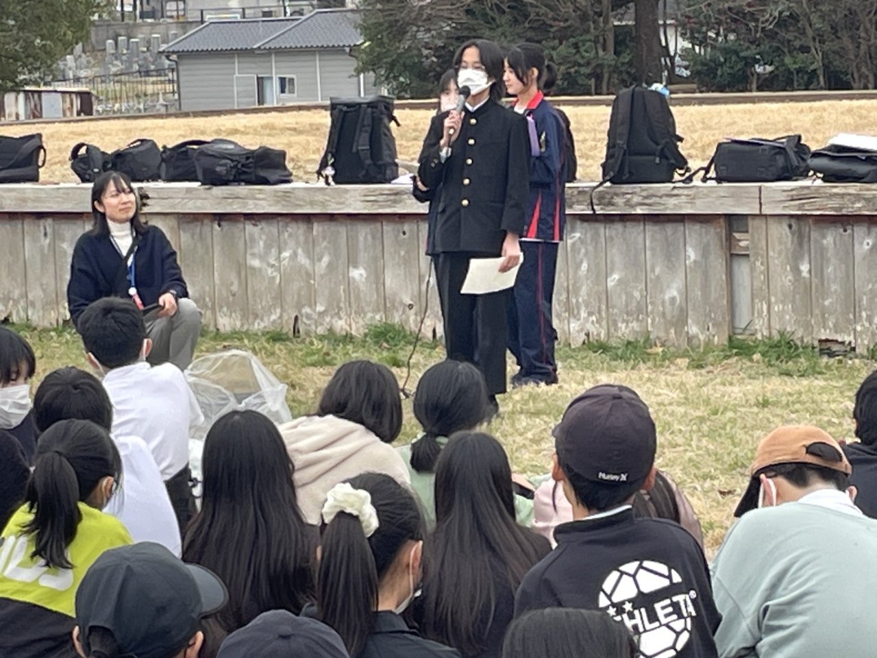 清掃後には、青少年育成学区民会議の山岡先生から国庁跡の歴史や文化についてお話をいただき、地域への理解と愛着を深める貴重な時間となりました。