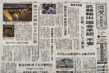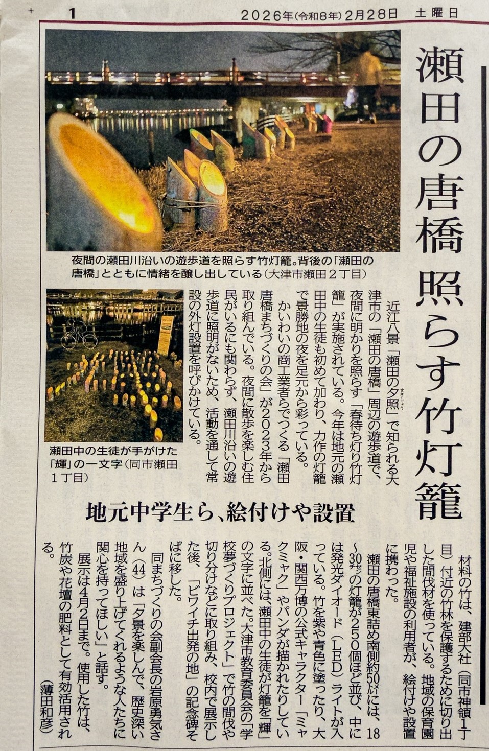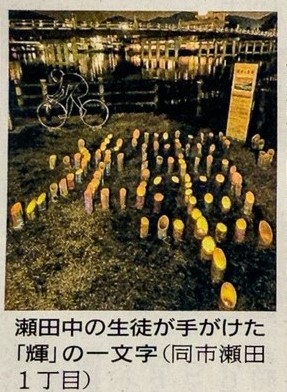 2月28日の京都新聞に「春待ち灯り竹灯籠」が紹介されました。記事の中には瀬田中学校の取組も照会されています。(詳細は新聞をご覧ください。)