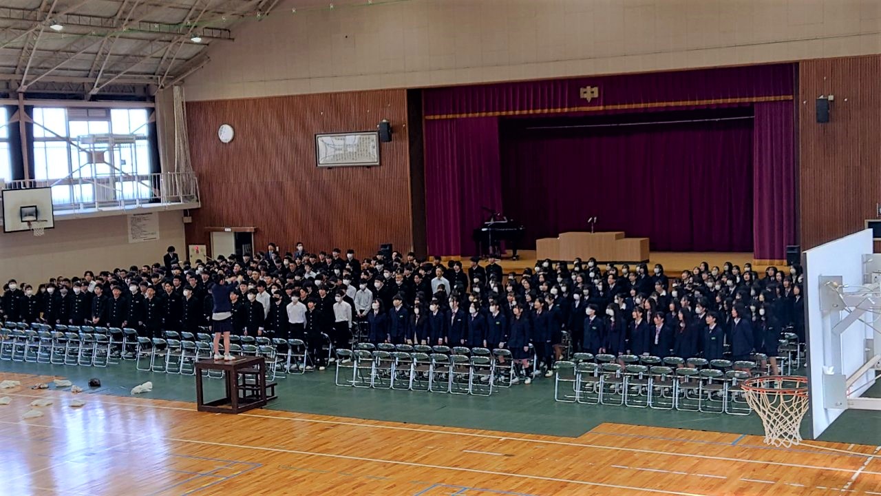 本日、滋賀県立高校入試(独自型)が行われ、3年生49名のみなさんは、最後まで落ち着いて受検に取り組むことができました。これまで積み重ねてきた努力に、心から拍手を送りたいと思います。本当にお疲れさまでした。卒業式までの登校日は、残り6日となりました。仲間と過ごす時間を大切にしながら、卒業までの期間を充実して過ごしてください。