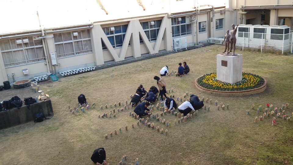 そして、プロジェクトのクライマックス!最終的には、全校生徒の竹灯籠で一文字を作り、夜の中庭を幻想的に照らします。みんなの夢が一つになり、光となって輝く瞬間をぜひ楽しみにしてください。