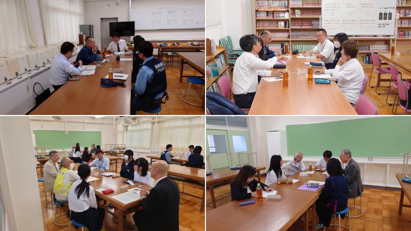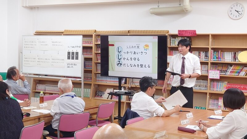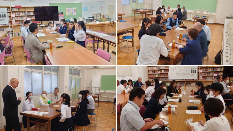 10月20日、「学校運営協議会・学校協力者会議 合同会議」を開催しました。 まず、委員の皆さまには5時間目の授業を参観していただき、その後、6つのグループに分かれて地域の委員さんと生徒会メンバーによるグループ協議を行いました。 各グループは、4〜5人の大人と2〜3人の生徒会メンバーで構成。最初はアイスブレークとして自己紹介を行いました。生徒は「部活動」「趣味」「今がんばっていること」などを紹介し、委員の皆さんは「地域での活動」や「中学時代に夢中になっていたこと」を話してくださいました。 その後は、次のような正解のないテーマについて意見を交わしました。 ・好きなことを仕事にするのは幸せか?安定した仕事に就くことは幸せか? ・スマホは便利か?それとも危険か? ・勉強は夢のため?それとも将来の安心のため? など、 最初は緊張していた生徒たちも、時間がたつにつれて表情が豊かになり、言葉数も増えていきました。大人と生徒が互いに学び合う、貴重な時間となりました。 最後には、参加した生徒から「こんな機会を作ってくださってありがとうございます」と、わざわざ荒川教頭にお礼を伝える姿も見られました。 コロナ禍でこうした交流の場が制限されていたこともあり、生徒にとっても新鮮で、心に残る体験になったようです。 今回の合同会議は、生徒と地域の大人が互いの考えや価値観に触れ、学び合う貴重な機会となりました。委員の皆さまからは「生徒の率直な意見に刺激を受けた」「地域としてできることを改めて考えるきっかけになった」との声を聴かせてもらいました。 生徒にとっても、普段の学校生活では得られない視点や励ましを受け、将来を考えるうえで大きなヒントになったことと思います。 今後も、学校と地域が手を取り合い、子どもたちの成長を支える取り組みを続けてまいります。ご参加いただいた皆さま、本当にありがとうございました。