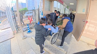 実際に車いすに乗ることで、ちょっとした段差や坂がどれほど大きな障壁になるかを体で理解しました。