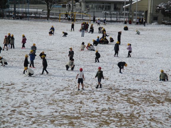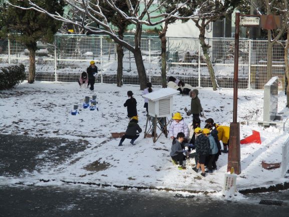 瀬田のこの地域で、雪遊びができるくらい雪が積もることは珍しいのかもしれませんね。私は、もっと北から来ているので、家の周辺は20cmくらい積もっていました。そんな珍しい雪を前にして子ども達は登校時から大変興奮していましたが、低温のため、道や昇降口が凍り、大変危険な状況でした。朝から雪かきをしましたが、子ども達が滑って頭を打たないか心配しています。一時間目は、多くの学級で運動場等で雪遊びをする子ども達の姿がありました。