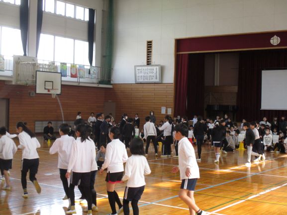 低学年から高学年まで、休み時間一生懸命練習してきた長縄(8の字跳び)の北リンピックが昨日と本日の二日間、体育館で昼休みに行われました。子ども達が集中して、気持ちを一つにして取り組む長縄は、結果はどうあれ、見ている者を感動させていました。学級の応援団も駆けつけ、大変盛り上がりました。