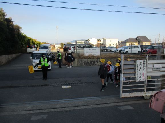 朝早くから子ども達の見守りのために、地域の多くの方々が中学校、小学校前の道に立ち、優しく挨拶をしていただきました。寒い中ありがとうございました。寒いため、余り挨拶の返事ができない子もいたかもしれませんが、子ども達の心はぽかぽかしていることと思います。