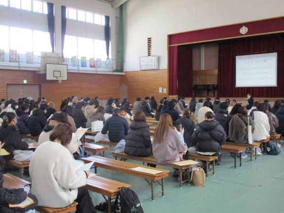 9:40より、入学説明会を体育館で行いました。お忙しい中、そして大変お寒い中、多くの保護者の方々にお集まりいただきました。短い時間でたくさんの内容をお伝えしていますので、ご家庭に帰ってからわからないことが出てくるかもしれませんが、そんなときはご遠慮なく学校にお問い合わせください。本日は、ありがとうございました。