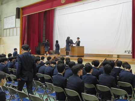 1,2年生は、いよいよ進級前の大切な1か月となります。1年生は1か月後には先輩に、2年生は最高学年に進級します。この1か月は自分自身が4月当初に立てた目標を振りかえり、成長した姿を実感してもらいたいです。ただ、うまくいかなかったことは、しっかり整理をして、次の学年のスタートまでに対策を打っておきましょう。4月に良いスタートダッシュが切れるよう、充実した日々を送ってください。