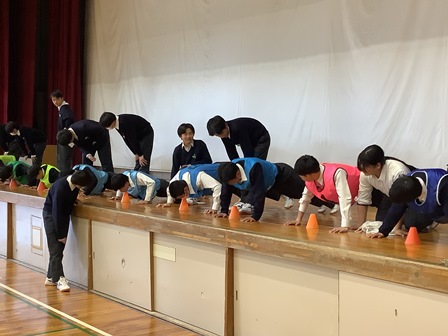 今日は昼休みに第2回のKITA-1グランプリが開催されました。今回は腕立て伏せ選手権です。事前に申込みをした精鋭が限られた時間で何回腕立て伏せができるかにチャレンジしました。優勝した生徒は実に76回の回数をこなしました。校長先生も飛び入りで参加して頑張ってくれました。今年度もう一回ぐらい開催できると良いですね。また中庭オープンには数名の女子生徒が楽しく談笑する姿も見られました