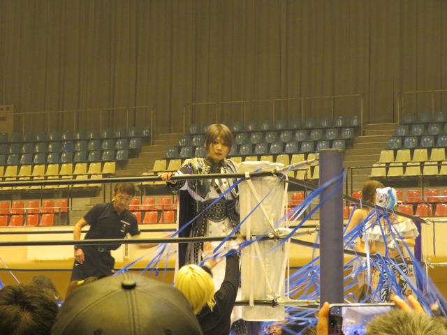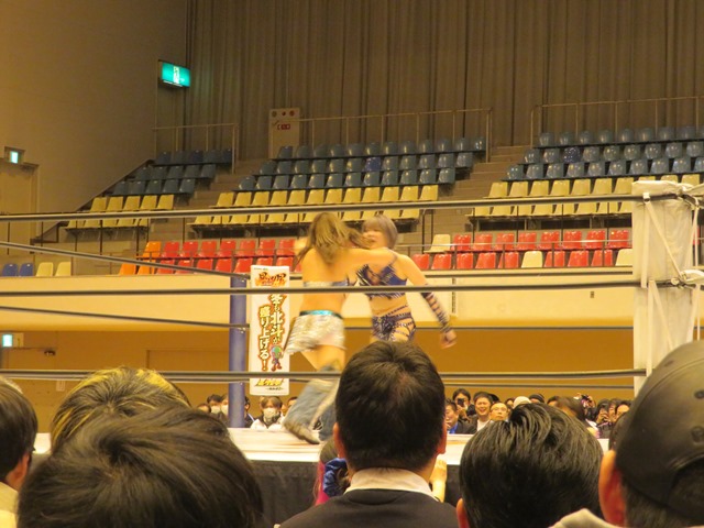 瀬田北中学校の卒業生で滋賀県唯一の現役女子プロレスラーである安納サオリさんの凱旋試合がウカルちゃんアリーナで行われました。校長先生と一緒に応援に行ってきました。女子プロレスの試合は初めて生で見ましたが、すごい迫力でした。全部で7試合が行われました。開幕戦にはフワちゃんが登場して場内を盛り上げました。2試合目と最終の7試合目で安納さんが登場しました。2試合目はどちらかといえばショー的要素が高くてすぐに終わりましたが、最終戦はガチの勝負で安納さんペアが見事勝利をおさめました。この3月で閉館となるウカルちゃんにとって記念になる大会でした。(私もウカルちゃんアリーナにはたくさんの思い出があります)