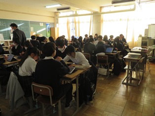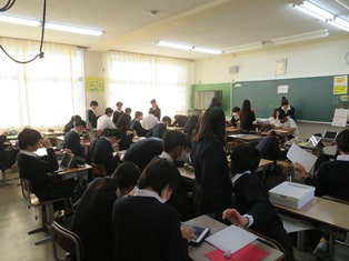 6時間目に1回りしていると、3年生は廊下で担任の先生と進路相談していました。2年生は先の職場体験のお礼状を各クラスで仕上げていました。1年生は最後の6時間目、通常の授業でしたが、どのクラスも熱心に取り組んでいました。明日から午前中授業です。