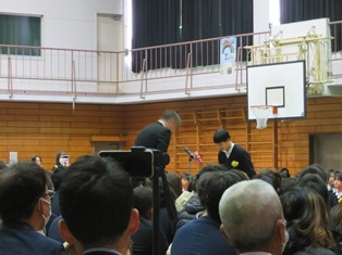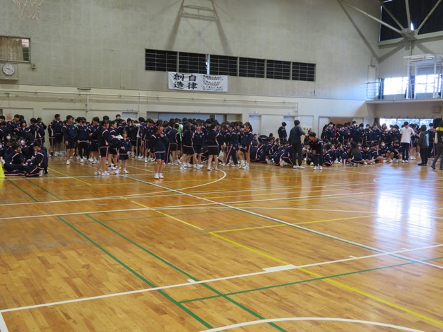 今日は2年生が1校時から4校時にかけて、学年集会と学年レクリエーションを行いました。学年集会では、各クラスの総括発表のあと、学年主任から1年間の締めくくりの話がありました。3年生に向けて先輩として1,2年生の手本になれるように心の準備をしていきましょう。