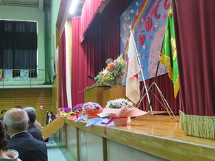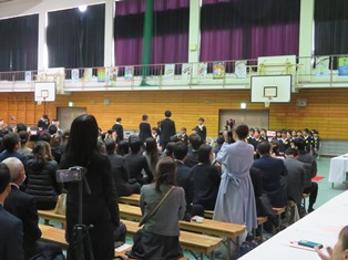 今日は小学校の卒業式が行われました。本学区には2つの小学校があるので、校長先生と分かれて出席させていただきました。