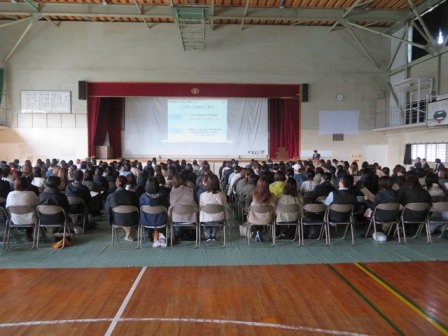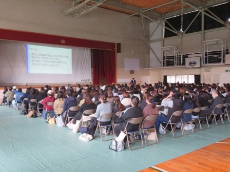 2年生は14時から体育館の方で進路と修学旅行の保護者説明会が行われました。私も説明会の冒頭に学校長に代わり、あいさつをさせていただきました。本当に多くの保護者の方がお越しいただき、進路主任の説明を真剣に聞いていただきました。義務教育後の進路決定は、初めての人生選択になる人も多くおり、一番上のお子さんの場合、保護者のみなさんも初めての経験となります。今日は今年度の実績と1年間の進路決定までの流れを説明しました。また、修学旅行の方は学年主任が日程説明を、旅行社の方が保険や体験学習など詳細な説明をさせていただきました。今後もわからないことがあれば、いつでも気軽の相談していただければと思います。