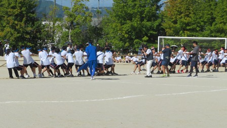 今日は晴天に恵まれ、3年生の体育大会が行われました。保護者参観もOKですので、本当にたくさんの保護者のみなさんがお越しいただきました。(229名来ていたいただきました。)