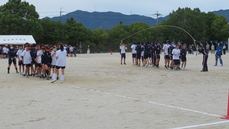 今日は晴天にも恵まれ、2年生の体育祭が行われました。3年生の時と比べても気候はどちらかといえば寒いくらいの急に肌寒くなりました。それでも2年生は元気に玉入れから始まって、二人三脚リレー、大縄跳び、綱引き、全員リレーと進み、クラスの団結を駆使し、全力で競技していました。保護者も3年生のときと変わらないぐらいたくさんの方に来ていただいて、応援いただきました。ありがとうございました。明後日は1年生です。中学校に入って最初の体育祭、どんな姿を見せてくれるか楽しみです。