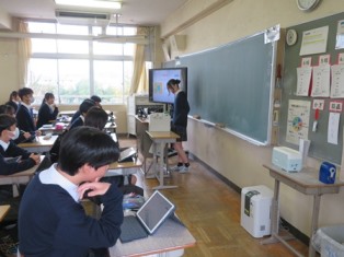 次に3年生の国語を参観しました。タブレットを活用しながら環境に配慮するためにどんなことができるかということをプレゼンしていました。一人2,3分の発表ですが、発表後は質問にも答えていました。今やプレゼン力はどの業界でも必要な力です。準備が大変な作業ですが、今から身につけておくことをおすすめします。