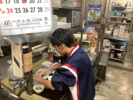 職場体験学習が2日目を迎えました。瀬田北小学校では15名の生徒がお世話になっています。生徒はクラスに分かれて担任の指示に従い、子どもたちのサポートをしていました。あたか飯店では器に料理を詰めたり、注文を聞いたりしていました。接客の難しさを感じていました。