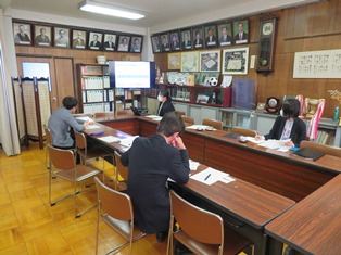 今日は県の教育委員会から2名の主査と指導主事が来られて、学校図書館をどのように教育活動全体の中に取り入れて、上手く活用していく術をどのようにしていくか教えていただきました。学校の図書館は本来「読書センター」「学習センター」「情報センター」の3つの機能を持っています。ところがICTの活発な活用によって「学習センター」と「情報センター」の機能がどこの学校でも薄くなって来ているようです。本校でも開館日はたくさんの生徒が利用してくれていますが、授業で使われていることは少なくなってきているような気がします。図書館を利用して多様な情報を得て、考えたことなどを報告したり資料にまとめたりするのにICTを活用できれば良いですね。本校の図書館はたくさんの人の協力で運営されています。もっともっと活用してくださいと助言いただきました。