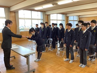 今日の放課後、生徒会役員で選出された会長、副会長に加え、執行部に選出された生徒の任命式を行いました。一人ずつ認証状を手渡し、執行部としての自覚を促しました。全員が礼儀正しく受け答えを行い、新執行部の意気込みを感じました。これからの活躍を心から応援したいと思います。