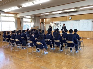 最後に校長先生からお話がありました。生徒会が活気あふれる学校は、学校に元気をもたらすと思います。新しいことにもどんどんと挑戦してもらいたいと思います。生徒会長からも「生徒の代表としてしっかり頑張る」という決意が滲み出ている様子でした。