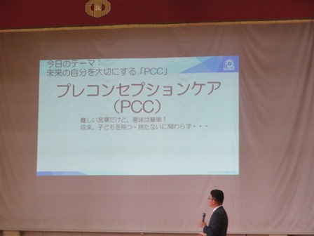 本日は3,4時間目に滋賀医科大学医学部附属病院の高橋顕雅先生を講師としてお招きして、1,2年生で性に関する学習の講話がありました。今回は「プレコンセプションケア」についてお話を聞きました。「プレコンセプションケア」とは若い男女が将来のライフプランを考えながら、日々の生活や健康と向き合うことです。これは今の自分や将来の自分の健康につながるだけではなく、将来の次世代を担う子どもたちの健康にも関わります。将来の妊娠・出産を希望しない方でも、性や妊娠・出産について科学的に正しい知識を持っておくことは、自分や相手を守るためにも必要なことといえます。プレコンセプションケアは、満ち足りた自分(well-being)の実現につながるヘルスケアとして注目されています。将来自分がこうなりたいのなら”これはしなければならない”や”これはしてはいけない”がよくわかるお話でした。これからの生活の参考なりました。