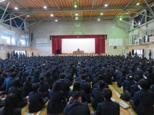 今日はいつもより大型の寒波が襲来するとのことでしたが、体育館にエアコンが入っていますので文化祭以来、久々に全校が集まって体育館で行いました。さすがに温かいですので、落ち着いて話を聞くことができていました。校長先生のお話です。全文を紹介します。