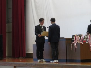 そのあと、新生徒会から会長のメッセージとスローガンの発表がありました。「One more Try(間違えてももう一度チャレンジ)」とてもよいスローガンですね。そのあと、たくさんの人のこの2学期の表彰伝達がありました。みなさん静かに聞き、拍手で称えてくれていました。2学期間もご愛読いただきありがとうございました。また1月4日に再開したいと思います。どうぞよいお年をお迎えください。