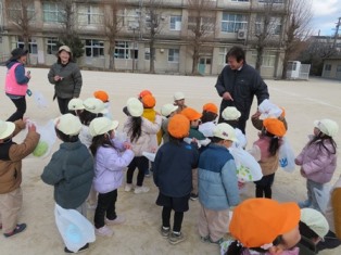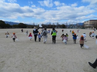 今日のお昼過ぎに瀬田北幼稚園の年少さんが本校のグラウンドにやってきました。手作りの凧を持ってきて広いグラウンドを駆け回っていました。様子を見に来た校長先生はたくさんの園児たちに取り囲まれてすっかり人気者。そのあとも寒さなんか気にすることなく、凧飛ばしにグラウンド駆け回っていました。次回は年中さん、年長さんもお越しになるようです。