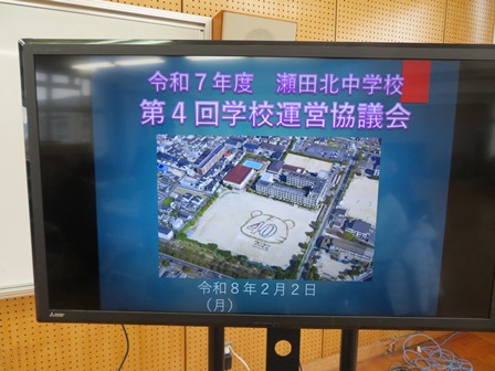 午後からは今年度最後の学校運営協議会が行われました。校長先生の挨拶のあと、学校評価の報告がされました。そのあとそれぞれ委員の方々に今年度の総括をしていただきました。前向きに学習活動が行われていること、地域Renger活動の参加率など頑張っている姿を誉めていただきました。来年度も引き続き様々な取り組みに前向きに頑張ってくださいということでした。