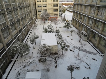 2月に入り温かい日が続いていましたが、昨日から降った雪で今日は久しぶりに積もりました。この辺が積もるということは相当な積雪量だったと思います。この季節は、3日ほど寒い日が続いた後、その後4日ほど温かい日がやってくる、まさに「三寒四温」です。これを繰り返しながら、春が近づいてきます。明日から3年生は県外私立高校の入試です。厳しい冬を乗り越えて、春が一日も早く来てほしいですね。