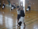昼休みに運動委員会主催のドッジボール大会がありました。1・2組、3・4組が合同チームを組んでゲームをしました。