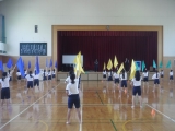 今日から組体操練習に加えて、旗体操練習が始まりました。自分でカウントを取りながら、音楽に合わせて旗を振ります。