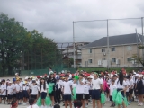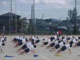 運動会本番に向けて、学年が一つになって練習に取り組んでいます。