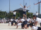 今年の組体操・旗体操のテーマは「挑戦」。新たな技への挑戦。仲間との挑戦。自分の可能性に挑戦。